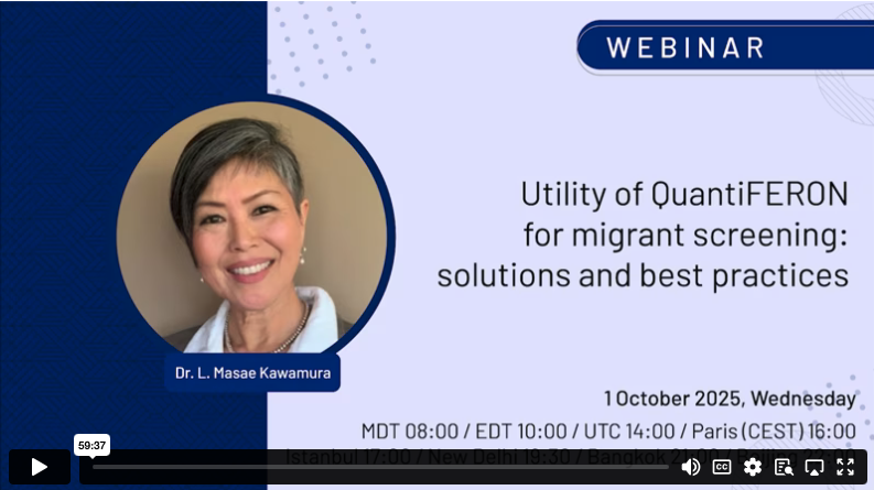 Webinar Recording Now Available: Utility of QuantiFERON for Migrant Screening — Solutions and Best PracticesWe are pleased to announce that the full recording of our recent webinar, “Utility of QuantiFERON for Migrant Screening: Solutions and Best Practices,” presented by Dr. L. Masae Kawamura, is now available for viewing. This session explores why screening for tuberculosis (TB) infection remains essential to global TB control efforts and how accurate interpretation of Interferon-Gamma Release Assay (IGRA) results enhances diagnostic precision. As a modern alternative to traditional tuberculin skin testing, IGRA has become a critical tool for identifying latent TB infection (LTBI), offering improved specificity and operational advantages for migrant populations and screening programs worldwide. Dr. Kawamura provides a clear, practical framework for interpreting IGRA results, highlights important clinical considerations, and shares real-world best practices for healthcare professionals working in TB screening and migrant health. Her guidance helps ensure that clinicians use IGRA effectively and confidently within diverse screening contexts. The recording is now available for all participants and panel physicians who were unable to attend the live session. It is an excellent resource for strengthening understanding of IGRA testing and improving programmatic decision-making. |
